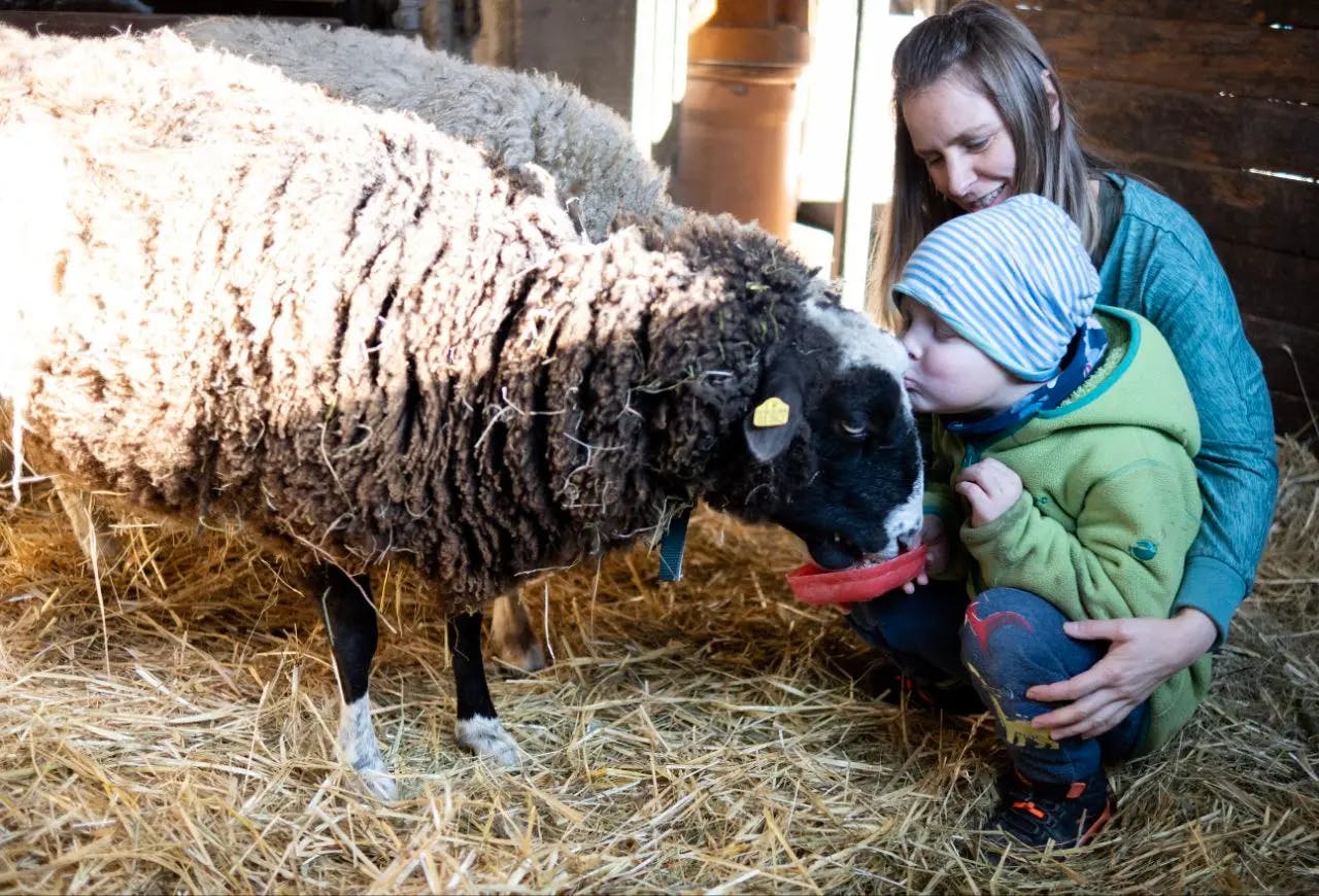 Unsere Ziegen und Schafe sind besonders gut für agile Menschen geeignet, die auch gern einmal bei der Stallarbeit mitwirken möchten.